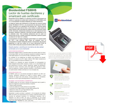 Bioidentidad Futronic FS88HS es un captahuellas cuya precisión de captura está certificada por el FBI, cumpliendo con las normas de reseña dactilar FBI Mobile ID FAP 20 y de procesamiento de información FIPS 201 para la verificación de la identidad de las personas (PIV - Personal Identity Verification).